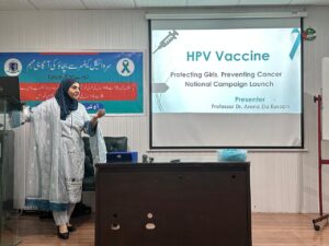 This was followed by a comprehensive session on Prevention of Cervical Cancer and the Role of HPV Vaccination, presented by Prof. Amina Zia. She highlighted the significance of the HPV vaccine as a powerful preventive tool and stressed the importance of integrating vaccination programs into routine health services to protect future generations.